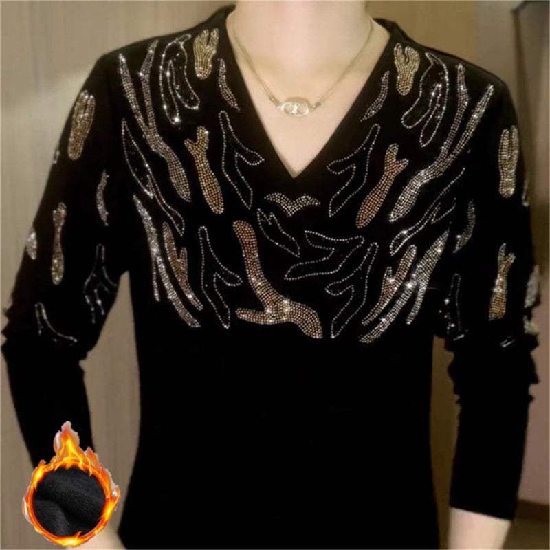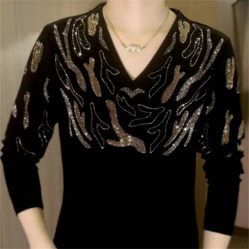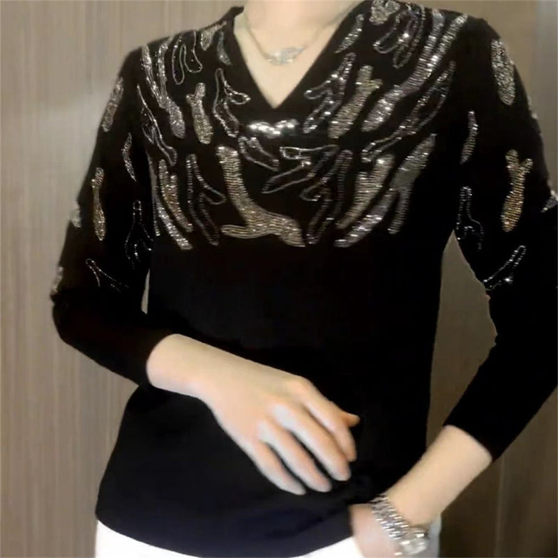 Sparkly V-Neck Knit Blouse