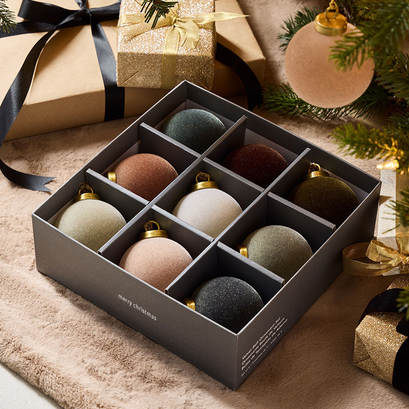 ASSORTED MUTED COLORS: A collection of nine distinct, earthy tones provides a versatile palette, allowing for harmonious integration with various holiday decorating themes.