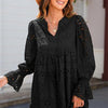 Package Includes:1*Women's V-Neck Lace-Up Hollow-Out Dress with Flared Sleeves